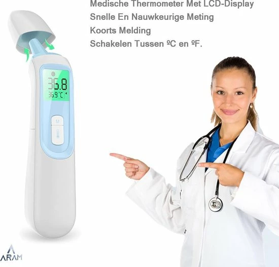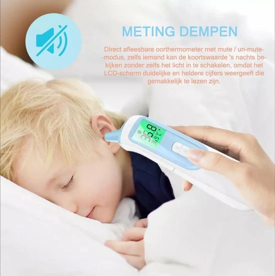 - ?Medische thermometer met LCD-display? Digitale thermometer met groot LCD-scherm geeft duidelijke meetwaarden weer. Direct afleesbare oorthermometer met mute / un-mute-modus, zelfs iemand kan de koortswaarde ‘s nachts bekijken zonder zelfs het licht in te schakelen, omdat het LCD-scherm duidelijke en heldere cijfers weergeeft die gemakkelijk te lezen zijn.