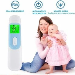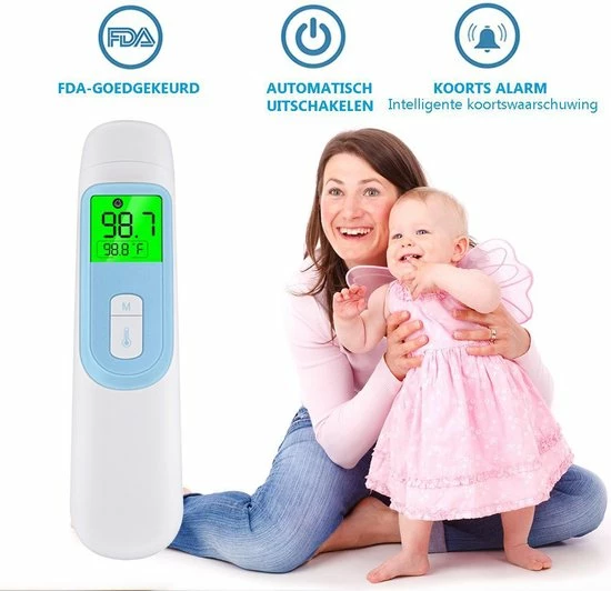 - ?Koortsmelding? Thermometer voor koorts met alarm voor hoge temperatuur, die onmiddellijk een abnormale lichaamstemperatuur herinnert. En het slaat 40 metingen op om veranderingen in de lichaamstemperatuur te vergelijken. U kunt uw temperatuur gemakkelijk volgen.