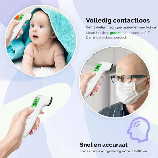 De voorhoofdthermometer zorgt ervoor dat jij je kindje niet hoeft wakker te maken voor het meten van koorts. Daarnaast is het ook bruikbaar voor volwassenen.