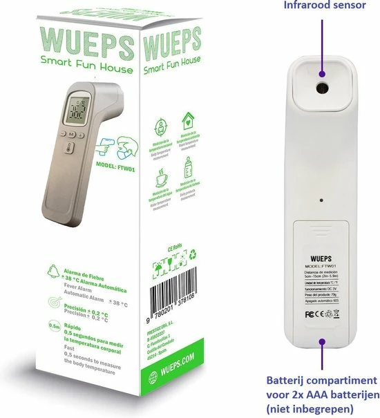 - Veilig voor alle leeftijden/groepen en volledig hygi?nisch, de thermometer helpt u om een veilige controle voor het lichaam, het oppervlakte en de kamertemperatuur. Bovendien is de thermometer uitgerust met een automatische uitschakeling (na 60 seconden) om energie te besparen.