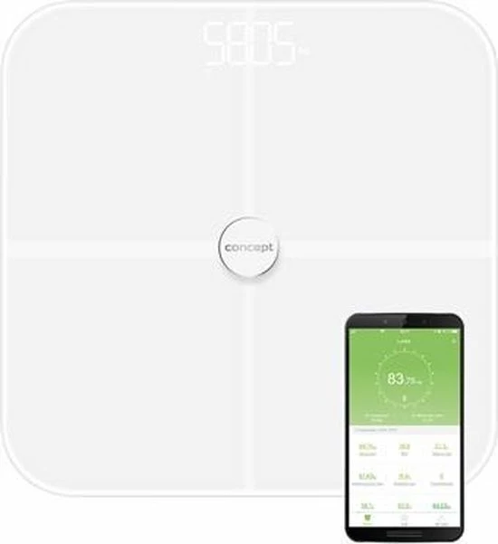 De diagnostische weegschaal van Concept maakt een uitgebreide lichaamsanalyse mogelijk. Het kan 13 lichaamsparameters meten met behulp van bio-elektrische impedantie. Met de Feelfit app heb je al je gegevens onder controle.