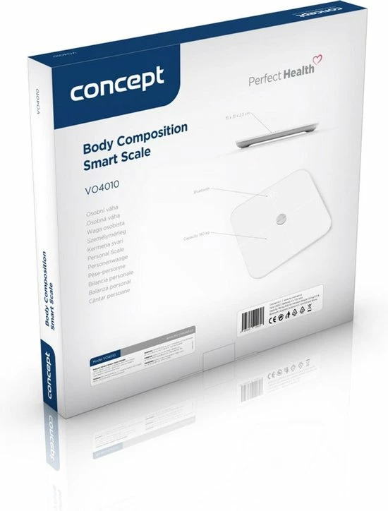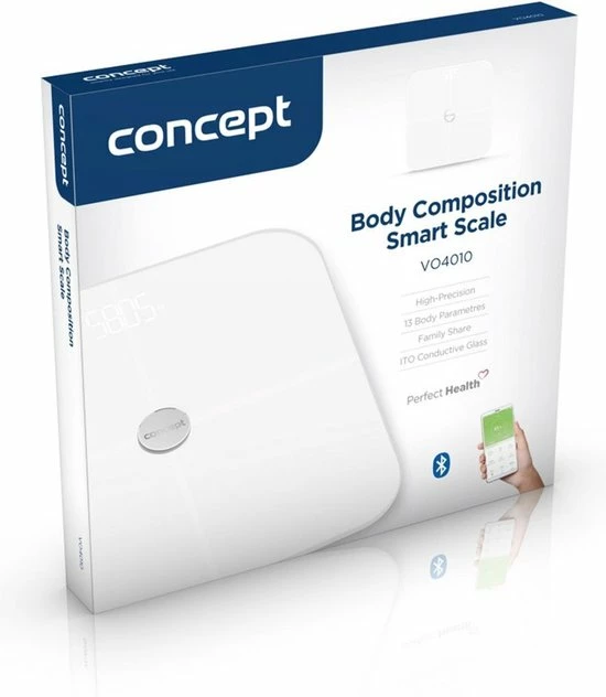Dankzij de intelligente Concept VO4010 Perfect Health weegschaal heeft u uw gezondheid onder controle. Naast lichaamsgewicht kunnen 12 parameters worden geanalyseerd, waaronder vetweefsel, spiermassa of metabolische leeftijd.