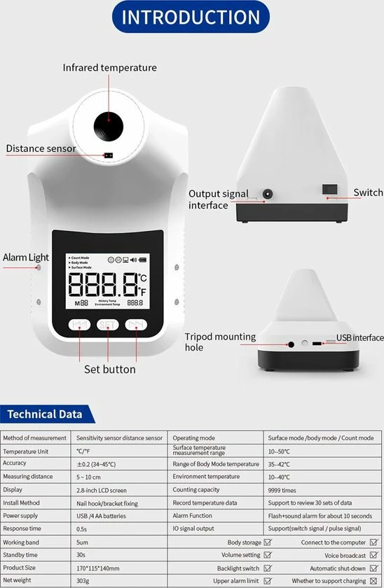 1. Nauwkeurige meting: Via een optische infrarood meting, tot op 0.1 graden Celsius nauwkeurig.