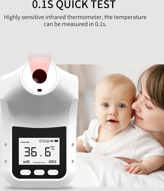 De ingebouwde bewegingssensor detecteert een persoon en voert daarna een snelle temperatuurmeting uit.
