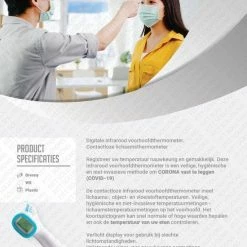 Deze thermometer is van belang als je denkt symptomen te hebben van het coronavirus. Door de snelle meting van deze infrarood thermometer kun je er binnen ??n seconde achter komen of je koorts hebt, om je vervolgens te laten testen op corona. Snel, veilig en preventief.