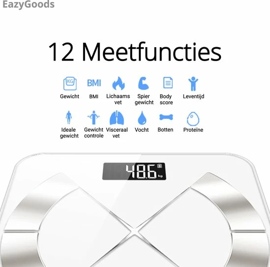 De smart scale van EazyGoods maakt het mogelijk om grip te krijgen op je fitnessdoelen. Nadat je op de weegschaal staat, wordt de meting overzichtelijk getoond in de lichaamsanalyse app. Na inzicht genomen te hebben in de meting weet je precies waar je aan kunt werken om gezond en fit te zijn!