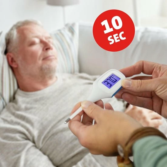 De thermometer is voorzien van een koorstalarm. Deze functie vertelt u door middel van 10x 3 piepjes dat uw temperatuur hoger dan 37,8 graad is. Ook handig: de thermometer onthoudt de laatste temperatuur in zijn geheugen. Dat is fijn op het moment dat u het koortsverloop in de gaten wilt houden. De thermometer schakelt zich na gebruik vanzelf uit. Zo spaart u de batterij. Mocht deze onverhoopt toch leeg raken dan is deze eenvoudig te vervangen.