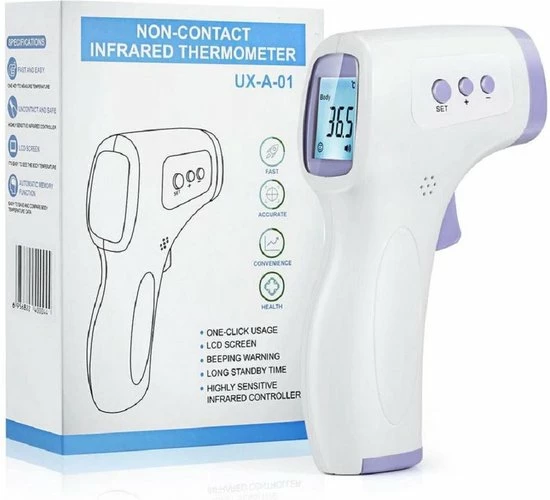 Een musthave om in huis te hebben tijdens deze tijden van ziekte: een digitale, contactloze infraroodthermometer! Binnen de seconde laat deze infraroodthermometer je zien wat je temperatuur is op het digitale scherm met kleurenindicatie. Het is een betrouwbare oplossing om snel je temperatuur te meten als je je niet optimaal voelt. Én wat vooral erg belangrijk is: dit type thermometer is veel hygiënischer dan de mond- en oorthermometer, omdat je de kans op overdracht reduceert.