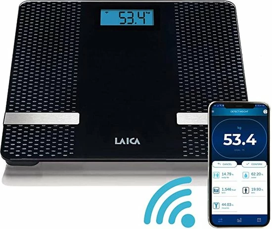 - Als je een smart-weegschaal met Laica Home Wellness verbindt, kun je op je mobiele apparaat zien: lichaamsgewicht – % lichaamsvet – % spieren – % water – lichaamsmassa-index – uitgangsmetabolisme – chronologische meetwaarden (weken, maand, jaar en de laatste 10 metingen)