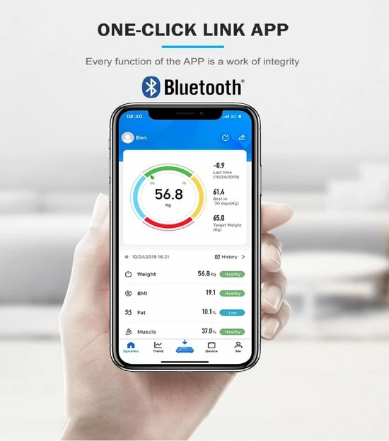 Lichaamsanalyse-app via bluetooth (compatible met iOS & Android-devices)