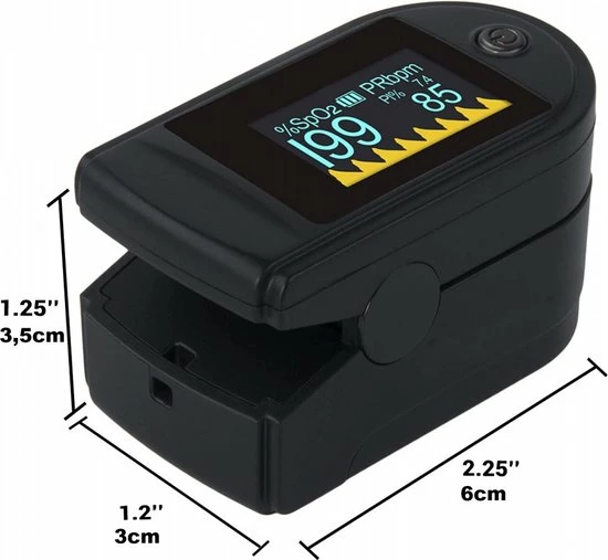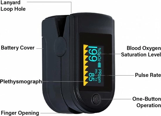 Deze pulsoximeter biedt een niet-invasieve, nauwkeurige en betrouwbare manier om binnen enkele seconden de zuurstofsaturatieniveaus (SpO2) en de hartslag (bpmPR) te meten. Naast het nauwkeurig en betrouwbaar meten van uw SpO2-waarde (bloedzuurstofverzadiging) en hartslag, heeft het ook vele andere handige functies, zoals plastische hemografie en alarm.