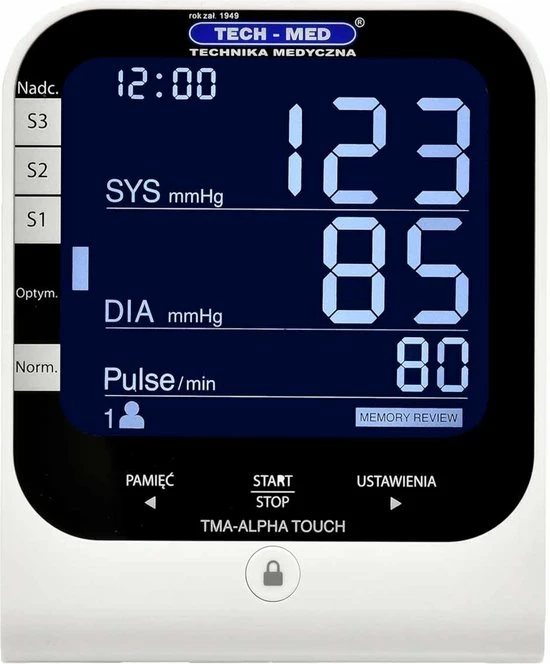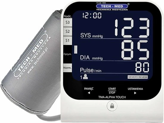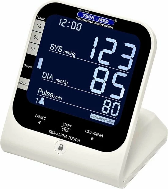 TECH-MED TMA-ALPHA TOUCH is een moderne bloeddrukmeter in een stijlvolle behuizing. De monitor wordt gekenmerkt door een hoge meetnauwkeurigheid, bevestigd door klinische studies. Nauwkeurige bloeddrukmeting kan niet eenvoudiger: druk gewoon op een knop. Een groot, ergonomisch LCD-display maakt het meetresultaat gemakkelijk af te lezen.