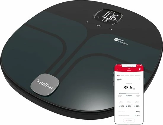 De Terraillon Master Coach meet meer dan enkel je lichaamsgewicht en deze nauwkeurige alleskunner beschikt bovendien over een WIFI-Smart-verbinding voor je mobiele apparaten waarmee automatisch en gemakkelijk de data wordt overgezet