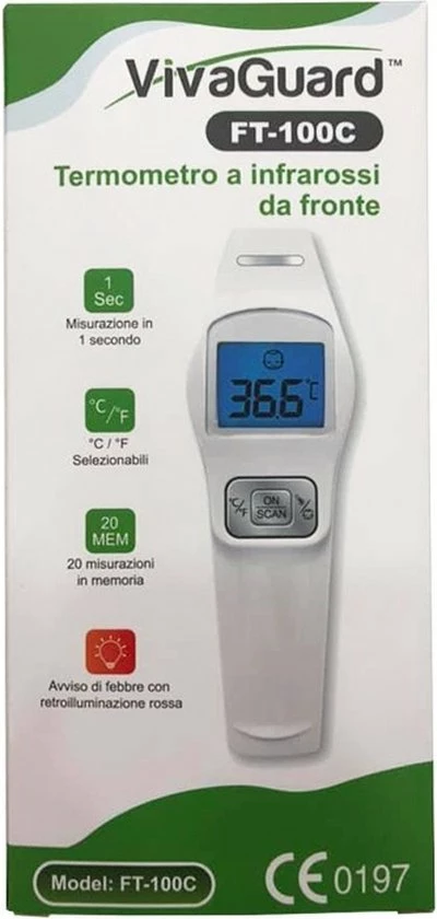 Gezond blijven is uiterst belangrijk in het griepseizoen. Helaas kan het onverhoop toch voorkomen dat u ziek wordt. U wilt dan natuurlijk zo accuraat mogelijk uw tempertuur meten. Zoek dan niet verder en schaf een VivaGuard aan! Met deze infrarode thermometer kunt u via het voorhoofd binnen 1 seconde bepalen wat de temperatuur is van u of uw kinderen. De termometer is tot op de decimaal naukeurig, voor een optimale lezing van de temperatuur.